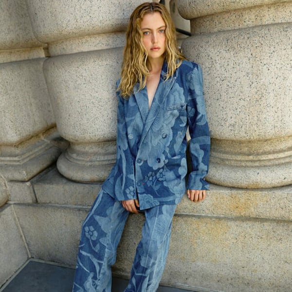Key pieces in the line include the ‘Luisa’ dress, a ruffled gown in chambray; the ‘Michele’ jumpsuit, cut in a stretch denim knit; and the oversized ‘Mabel’ trousers and ‘Blair’ jacket, featuring the brand’s archival ‘Dancing Rose’ motif laser-etched onto tonal denim. The capsule is designed to combine comfort and structure, with emphasis on versatility and ease of wear, the brand announced in a press release.